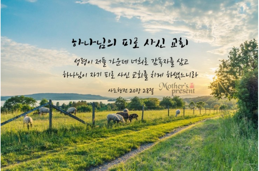 하나님께서는 친히 당신의 피로서 교회를 사시고, 양육하셨다라고 말씀 하셨습니다.