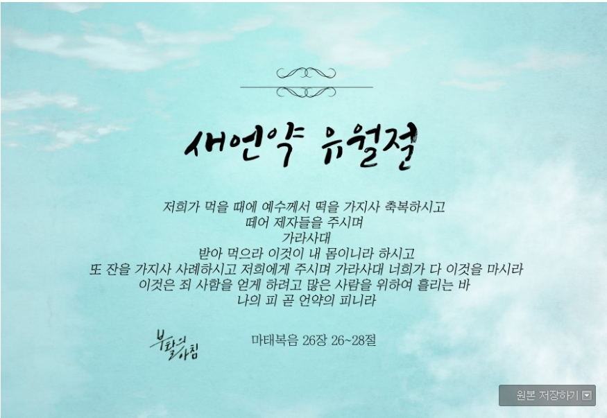 하나님께서는 유월절을 통해 우리의 죄를 사해주시며, 그리스도의 피에 참예함으로 그리스도와 한 몸이 될 수 있는 축복을 주셨습니다.