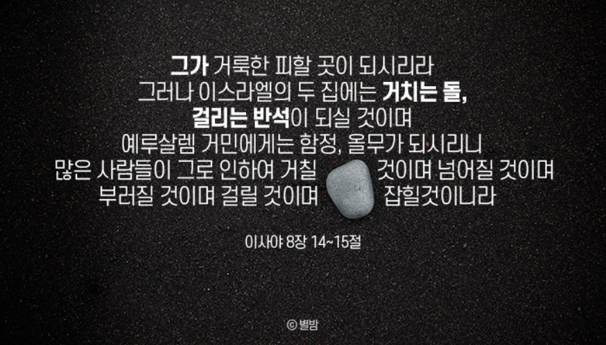 믿지 않는 자들에게는 거치는 돌 걸리는 반석, 함정과 올무가 되십니다.